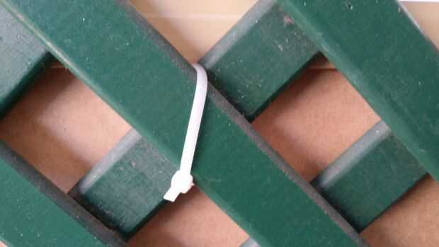 Vuelva a colocar el tablero del forro en los marcos y fije a las paredes. Contamos con celosía a lo largo de nuestra terraza usé una sujeción de cable para cada fotograma. Los niños que son muy divertidos y se ven maravilloso también.