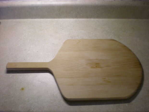 6. paleta pizza. Tuve uno cuando empecé, usé una tabla de cortar de madera grande. Trabajó, tipo de. Pero no casi tan bien como una paleta de pizza real.