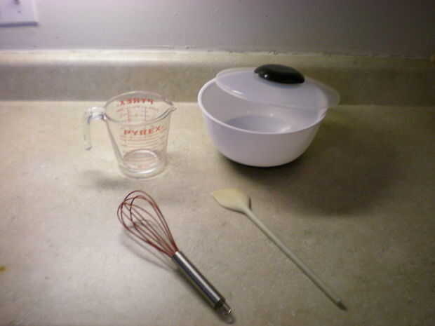 1. una taza de medir que puede contener ~ 2 tazas de agua