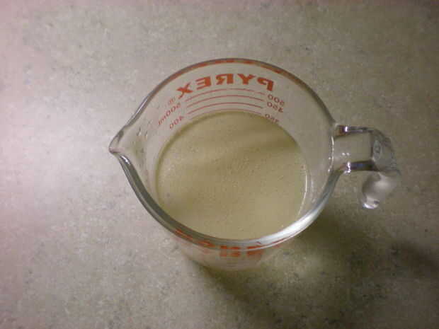 5. agregar levadura flotante hacia abajo en el agua es turbia.
