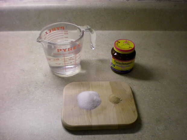 3. Espolvoree 1/4 de cucharadita de levadura en agua tibia azucarada. Cubra con envoltura de plástico o una toalla de té o algo. Esto se llama Blooming.