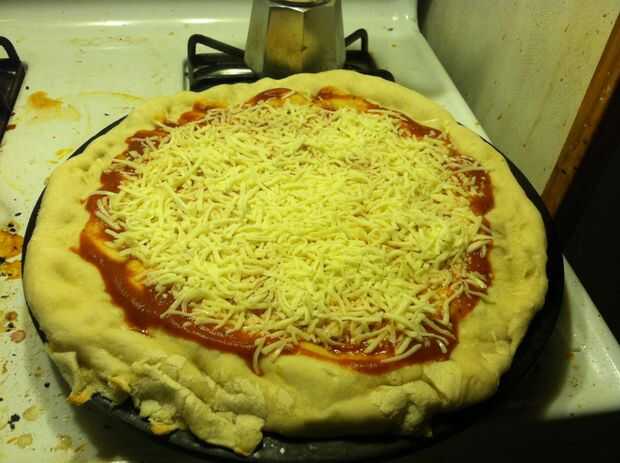 Hecho desde cero con masa casera de pizza es fantástica. Absolutamente delicioso. Casi pude comerlo todos los días de la semana. Sin embargo, llega un punto cuando estoy toda pizza hacia fuera y todavía tengo pasta de la pizza sobrante en la nevera.