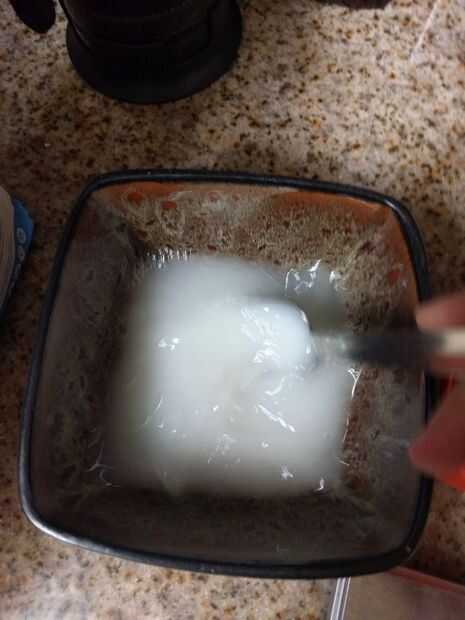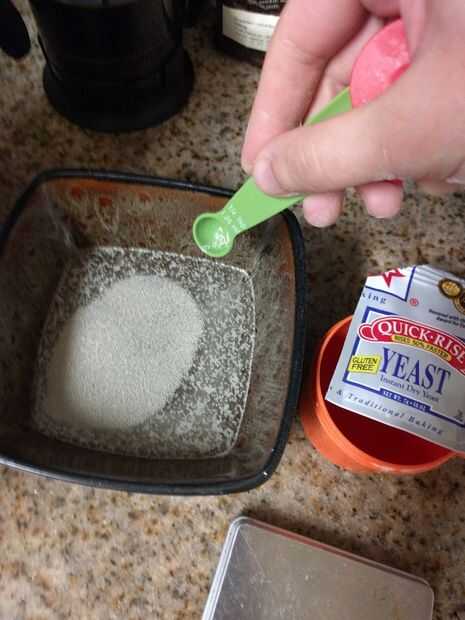 2. En un bol pequeño, añada la levadura en el agua. Mezclar con una cuchara hasta que se disuelva la levadura y el agua vuelve turbia blanca.