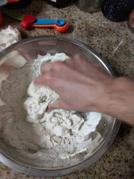 1. Mezclar los ingredientes secos (harina y sal) en un tazón.