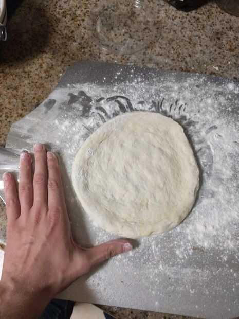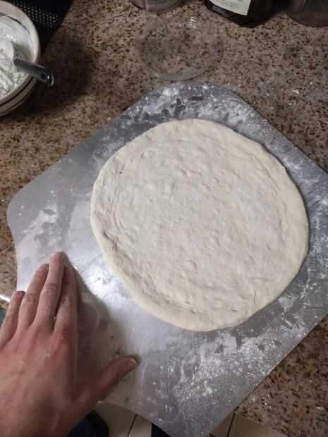 Desde este punto, es imprescindible trabajar rápida y eficientemente con la masa. No intente cambiar la forma de la masa si comete errores y nunca utilice un rodillo a menos que quieras un pastel de molde sin corteza. Formar la masa de pizza requiere práctica. Encontré este video muy útil cuando empecé a hacer pizzas. He sacudido probablemente menos de 20 pies en mi vida y seguir utilizando las mismas técnicas básicas. Lo recomiendo para los principiantes es muy harina todas las superficies de trabajo. Te recomiendo trabajar rápido ya que la masa comenzará a hidratar la harina y lo que pega.