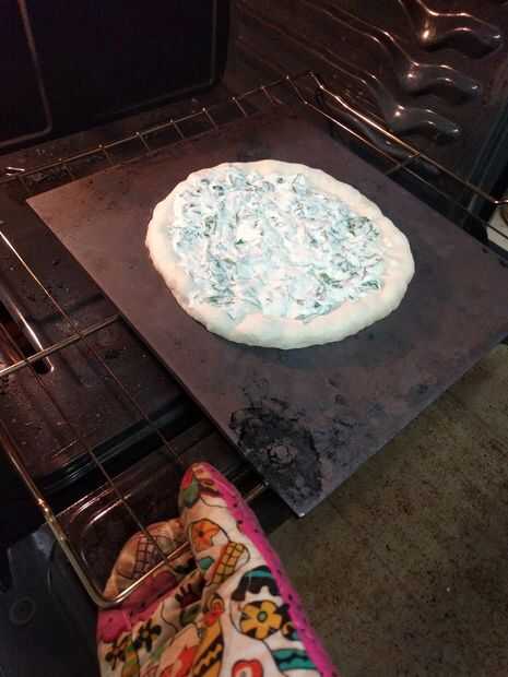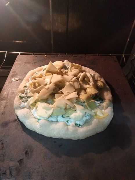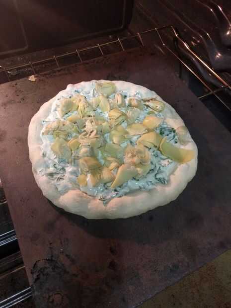 Pizza blanca: Espinaca y corazones de alcachofa (6 / 6 paso)