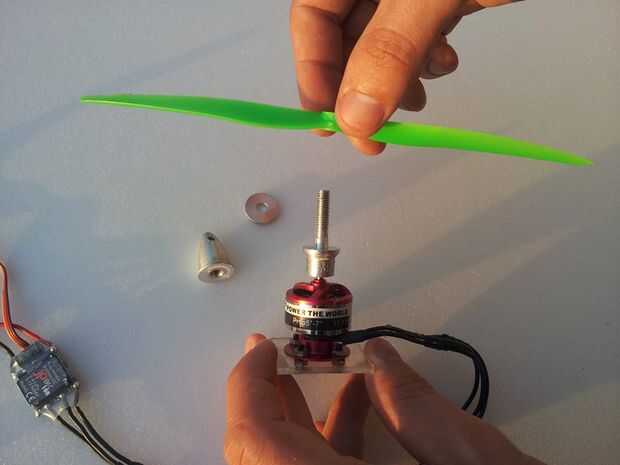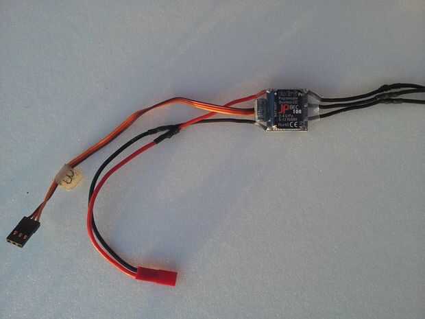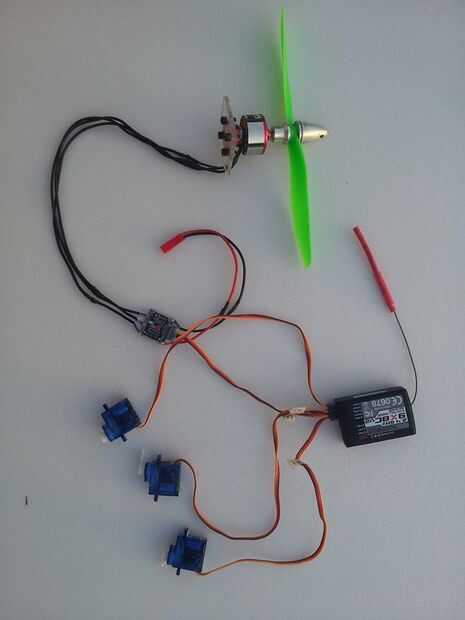 -A la electrónica de la prueba: encender el transmisor con el acelerador en la posición mínima, enchufe la batería en el ESC (que seguro que tienen polaridad). Luego puede mover los palillos en el transmisor para probar los servos. Si está probando el motor antes de su montaje sobre el plano, asegúrese de que se saca el sostén. No queremos ningún corte los dedos!!