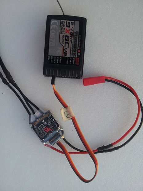-Enchufe el conector BEC de ESC (controlador electrónico de velocidad) en el canal 3 del receptor de radio. Canal 3 debe controlar el acelerador.