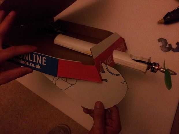 no tirar cajas de pizza, hacerlos en los aeroplanos.Lo que usted necesita:1 + pizza caja/cajas (con manchas de grasa como pocos como sea posible)1 llavero (cuadrangular metal thingy)Tijeras (preferiblemente afiladas y grandes)Cinta (conducto, negra,