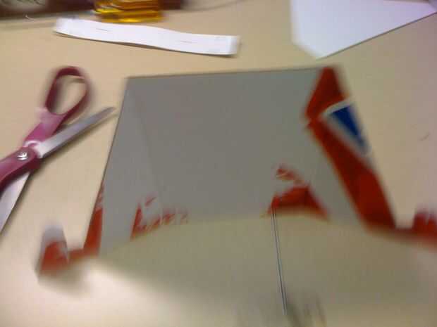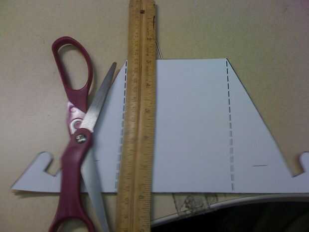 Mi método preferido es usar un par de tijeras para marcar la línea discontinua. No vaya hasta el cart6n, sólo lo suficiente para ayudar a doblar. Use el borde recto para guiar el corte. Asegúrese de que es super recto o su soporte todo va a salir tambaleante.