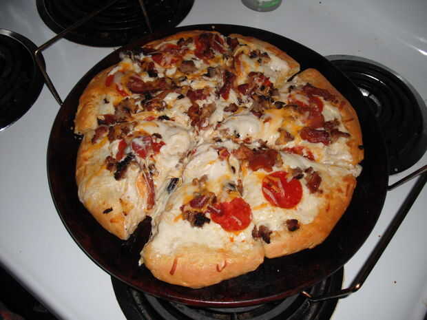 La pizza sale buscando todo tipo de fantásticos. Con mi nuevo método de la corteza, las galletas todavía realmente cocinan algo por separado y ronda un poco, pero eso está bien. Es fácil de cortar rebanadas muy uniforme.
