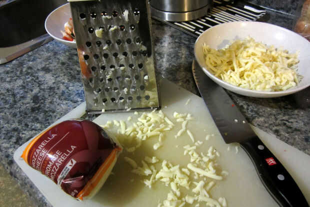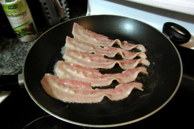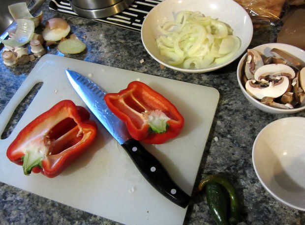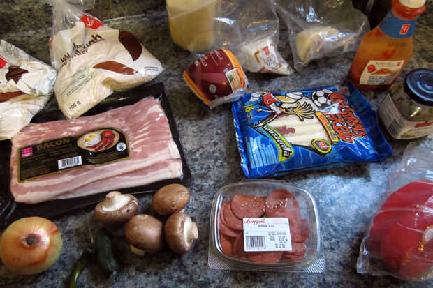 Porque va dentro de la corteza, se deben cocinar el bacon (y otras carnes como la carne de pollo o de tierra si lo desea) antes de tiempo. Corte primero todas tus verduras, luego cortar la carne para eliminar la contaminación cruzada. Si hay cualquier ingrediente en trozos grandes, asegúrese de cortar una pequeña cantidad de ella por lo que cabrá bien en la corteza.