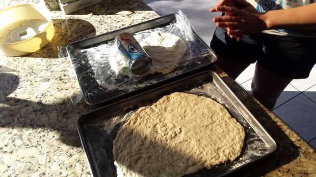 -Si se desea una corteza gruesa puede rodar los bordes hacia el centro. Personalmente me gusta masa delgada para que la salsa sea en el mismo nivel.