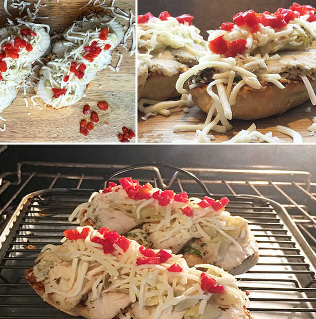 un gran nuevo giro en pesto con esta pizza de estilo suroeste!Ingredientes:10 rollos de cena Rhodes™, descongelado a temperatura ambiente1 libra pechuga de pollo deshuesada, sin piel, cortado en trozos de 1 pulgadacondimento para tacos 1 cucharada2 c