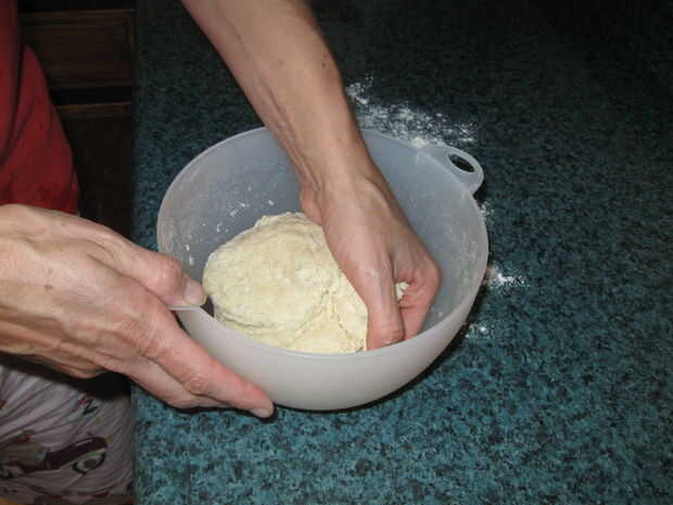 Use su mano para doblar la masa en el recipiente para crear una bola.