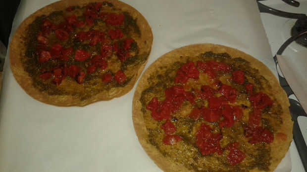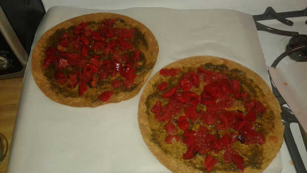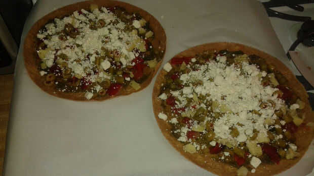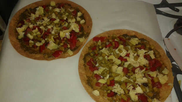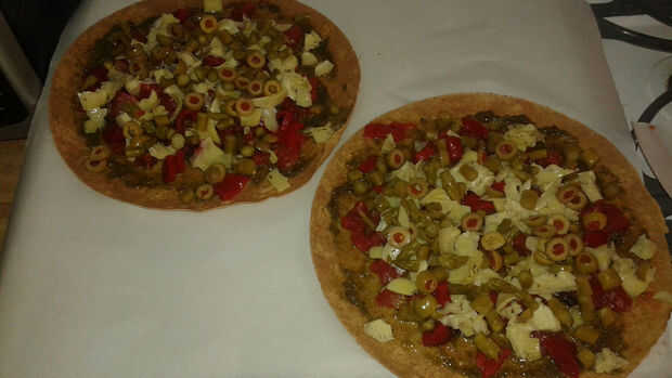 Ahora deje que su creatividad brillo! Capa en sus ingredientes. Me gustaría empezar con el más grande en piezas primeros y trabajos hasta el queso pasado.