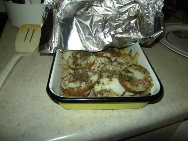 Esta receta la patata fue descubierta accidentalmente cuando estaba cocinando algunas sobras cocido al horno patatas con mantequilla. Cuando terminé de cocinarlos, tomé un bocado y se dio cuenta de que era la receta de patata buena estuve tratando y