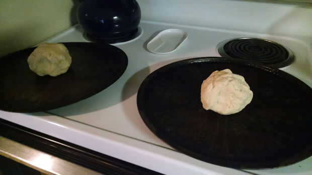 5. Amasar hasta que quede suave y luego dividir en 2 bolas iguales.