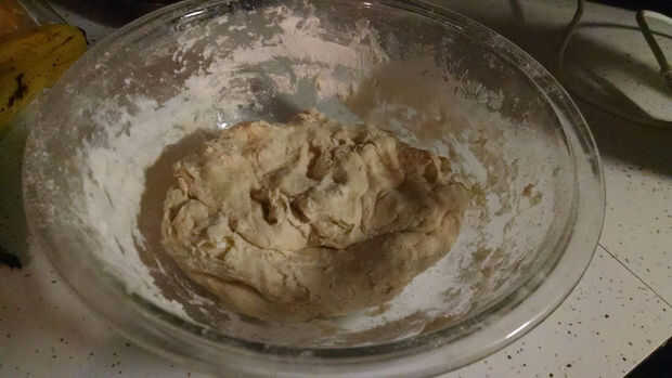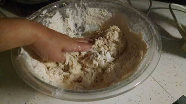 4. Añadir la otra mitad de la harina y mezclar hasta que la masa esté lo suficientemente firme para manejar.