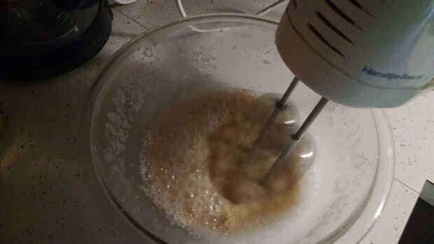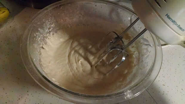 3. Añadir la mitad de la harina (1,5 tazas) y batir hasta que quede suave.