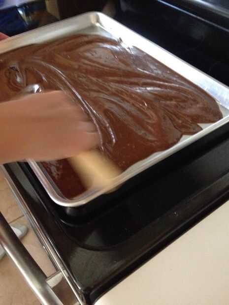 Aerosol PAM sobre el recipiente para crear una superficie antiadherente. Luego, vierta la mezcla de brownie. Con una cuchara, se separó a las esquinas y los bordes que no pueden ser cubiertos. Este paso es muy simple, pero asegúrese de que no dejar detrás también mucho en el tazón de fuente. Use una cuchara para obtener los últimos bits fuera de la vasija si es necesario. Cuadro 5. muestra el talud terminado, listo para ser cocido al horno! Disfrutar de las sobras en el tazón de fuente.
