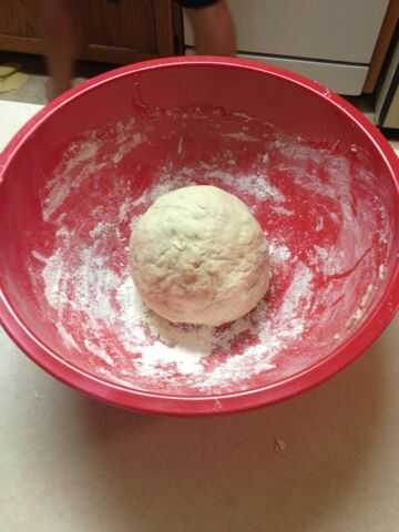 Después de que la masa se mezcla bien, rodar en una bola, cubrirla y dejar descansar durante 3 minutos.