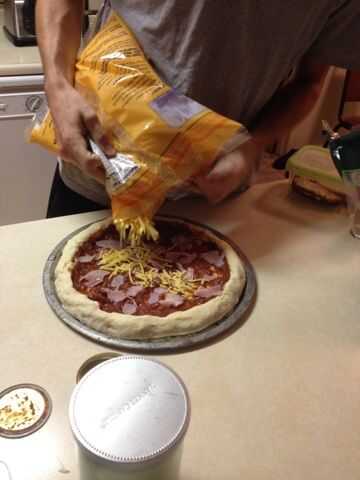 el viernes por la noche es noche de pizza en nuestra casa. Hemos encontrado que pizza desde cero no es difícil y sabe mucho mejor. Pruebe usted mismo y vea!Paso 1: Materia seca Para hacer dos pizzas 14", medida 1 1/2 tazas todas las harina y 1/2 taza