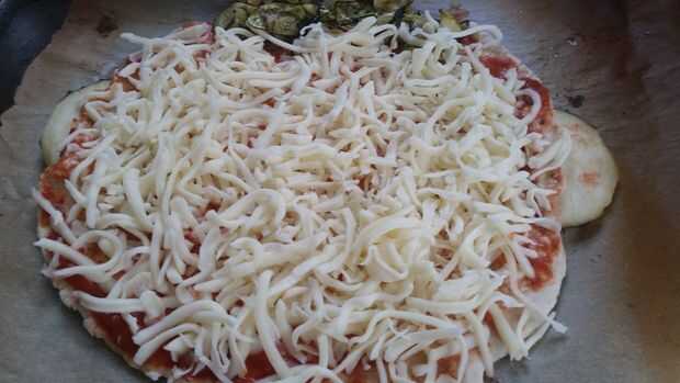 Cubrir con mozzarella, uso mozzarella rallado porque creo que es mejor para manejar.