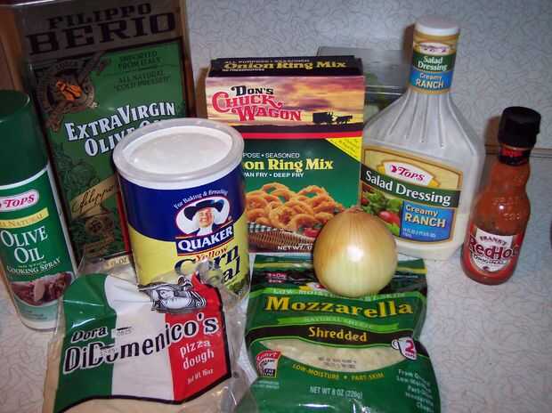 -Una cebolla, aceite, cebolla mezcla anillo y agua (alguna empacadora de cebolla)