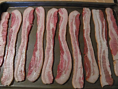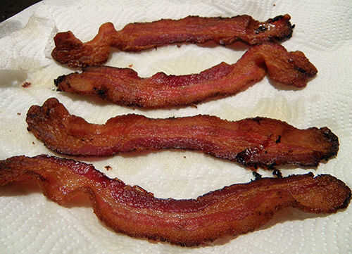 Cuando esté fría, tiras de tocino cortado en 1½ pulgadas.