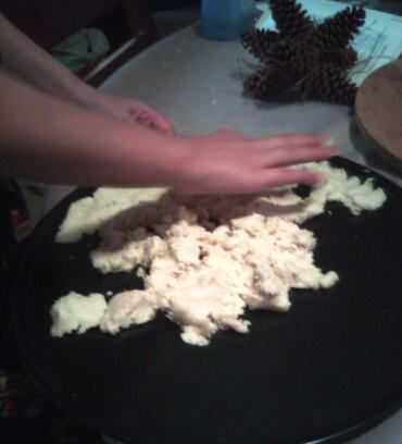 Presione la masa en un molde para pizza 14 pulgadas sin enmantecar.