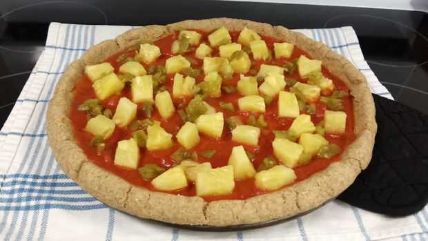 Pizza de Chile verde de piña con costra de grano entero (5 / 6 paso)