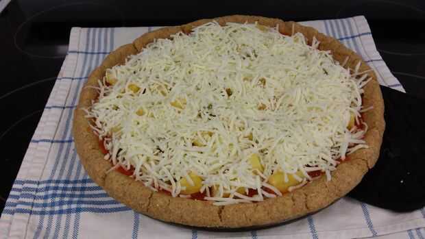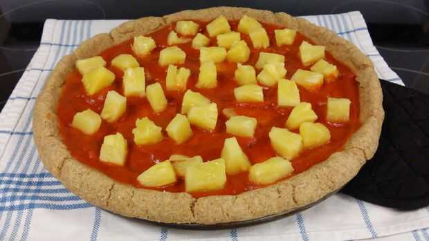 Superior con 1 taza de Salsa Marinara, 1 taza piña en trozos, escurrido, 1 lata pequeña chile verde picado y 6-8 onzas de mozzarella rallada.