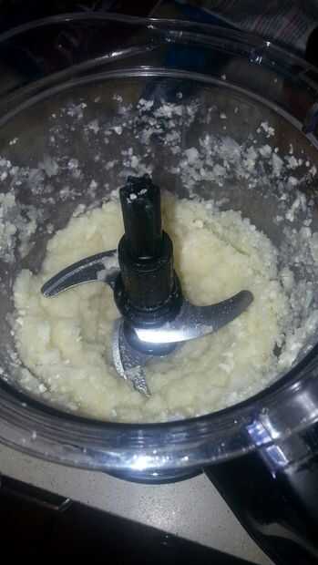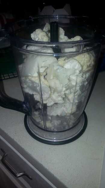 Poner coliflor, el ajo y la cebolla en el procesador de alimentos y procese hasta su muy fina (nieve)