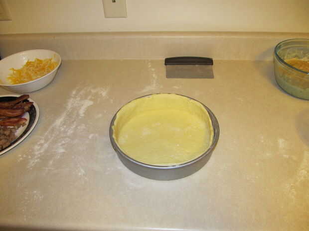 Desenrolla la masa sobre la bandeja y presione los lados.