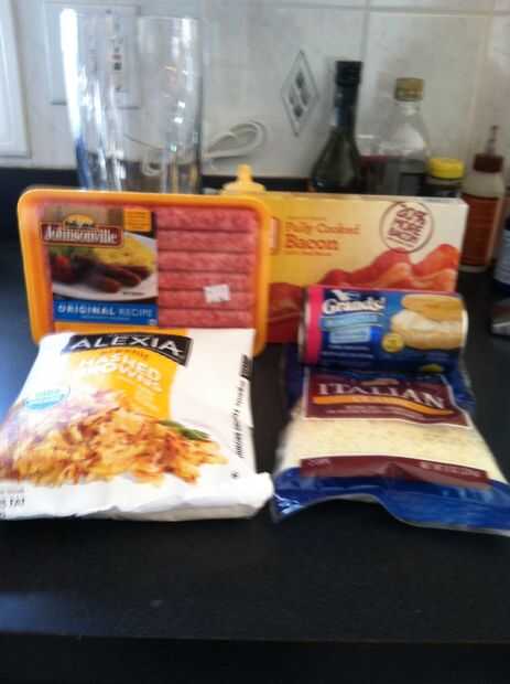 rallado papas • tocino • desayuno salchicha • galleta pasta • queso rallado