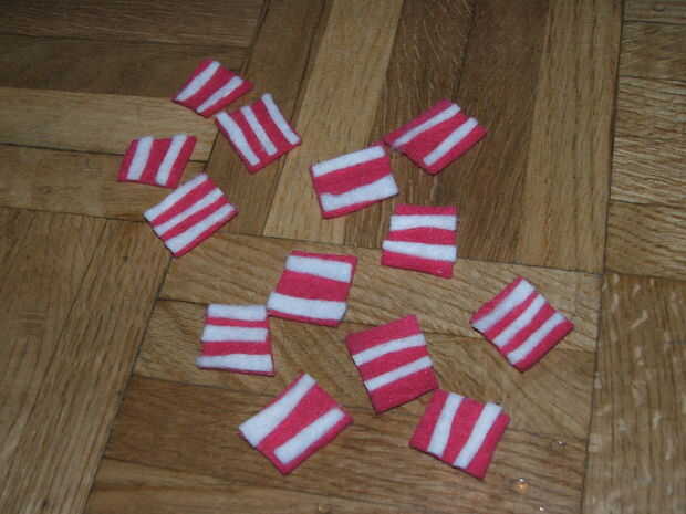 -Tocino: Similar al jamón, pero pegar tiras de blanco en los cuadrados de fieltro rosa.