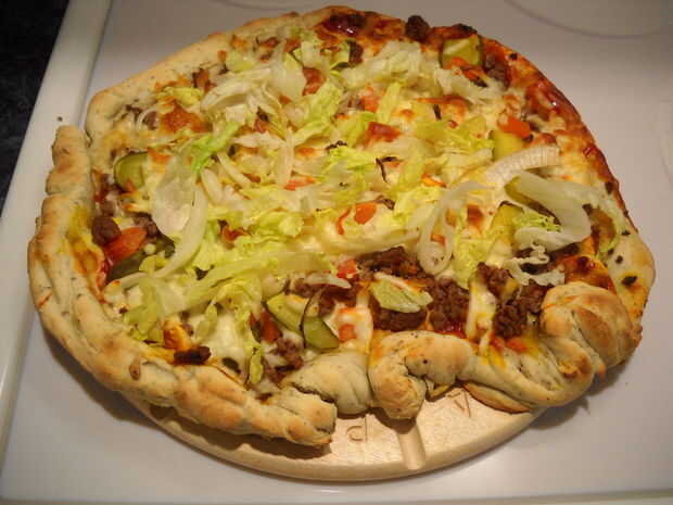 y voila, pizza de hamburguesa de licenciatura! ¡ Disfrute!