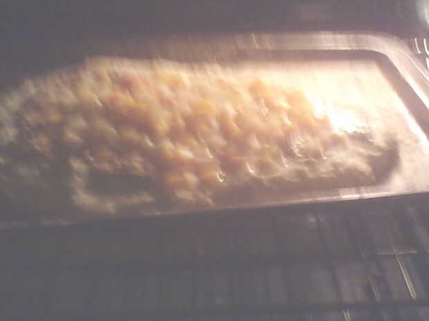 Por este tiempo el horno debe estar listo. Tenga en cuenta el tiempo. Poner la bandeja de galletas en el horno. Mantener un ojo en la pizza de galleta para que no se queme. No debe tomar más de 12 minutos como máximo. Observa atentamente!!!! Los bordes de la pizza serán regordete para arriba y dar vuelta a marrón. Después de 10 a 12 minutos Coloque el guante de cocinar y retire la bandeja de galletas.