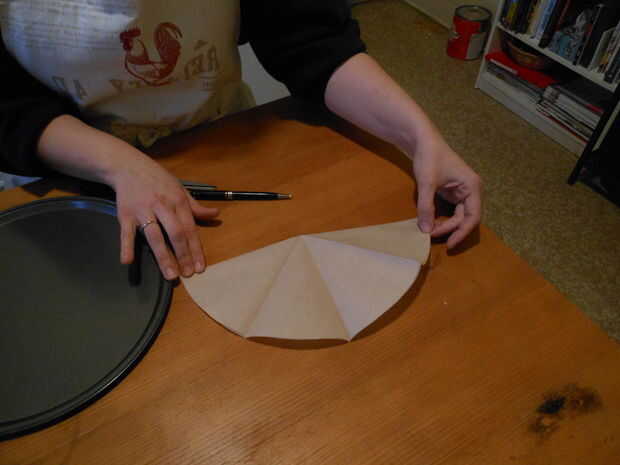 3. doble el círculo por la mitad y luego por la mitad otra vez y luego por la mitad otra vez.