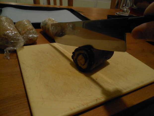 6. Coloque rebanadas en placas sin enmantecar para galletas * me gusta utilizar papel de pergamino, pero no es necesario * y hornear a 350° F durante 10-12 minutos.