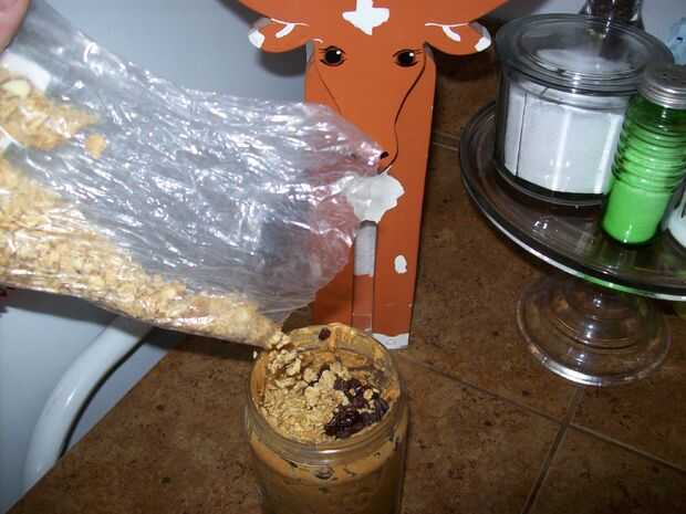 Agregue la granola. Use un poco menos como hiciste con las pasas de uva porque este se seca el producto final.