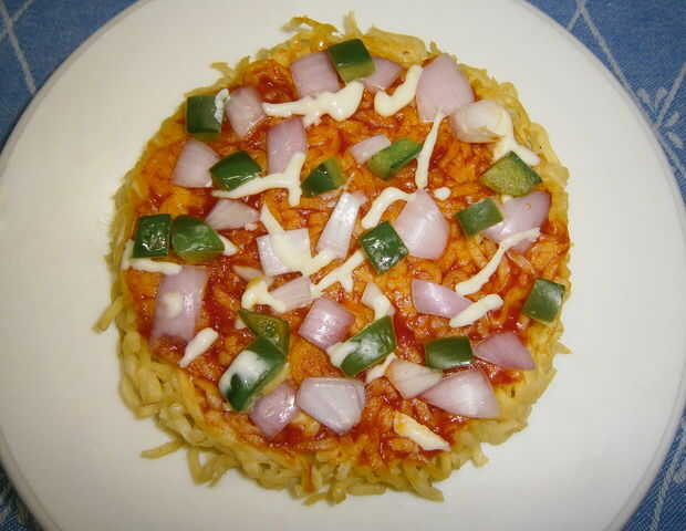Su Pizza de tallarines Hack de dormitorio está listo. Sorprende a su nueva compañera con todo lo que se puede hacer con sólo una caja de hierro y hervidor de agua. Tienen una deliciosa Pizza de tallarines.