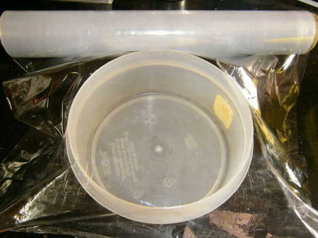 Tomar una caja con forma redonda. Coloque la envoltura de plástico transparente en la base.