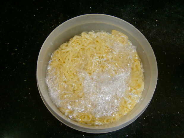 Si tienes acceso al refrigerador común entonces después de la Base de Pizza de tallarines se convierte en firme colocarlos en la nevera también. Entonces conseguirá realmente seca y firme.