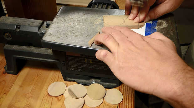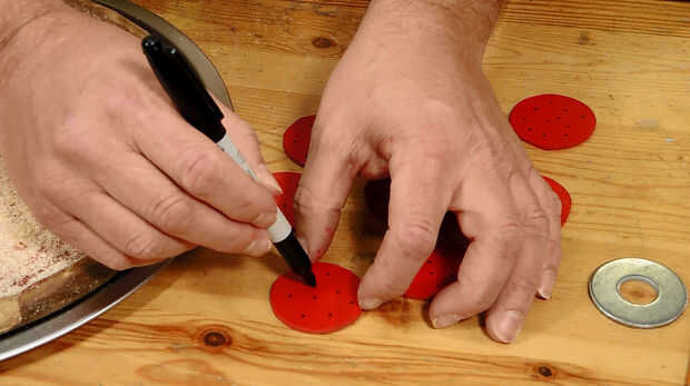 Corte algunos pequeños círculos finas de la madera de palets sobrantes de pepperoni. Pintura roja y añadir algunos puntos negros con un rotulador. Pegue la madera pepperoni en la pizza.