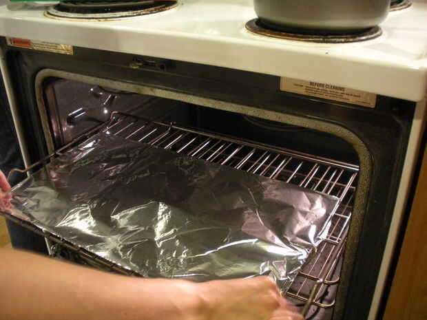 Cubrir una de sus parrillas con dos hojas de papel de aluminio, o azotar hacia fuera sus piedras pizza si los tienes.