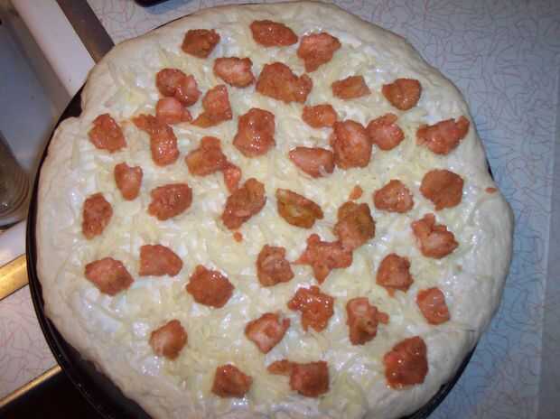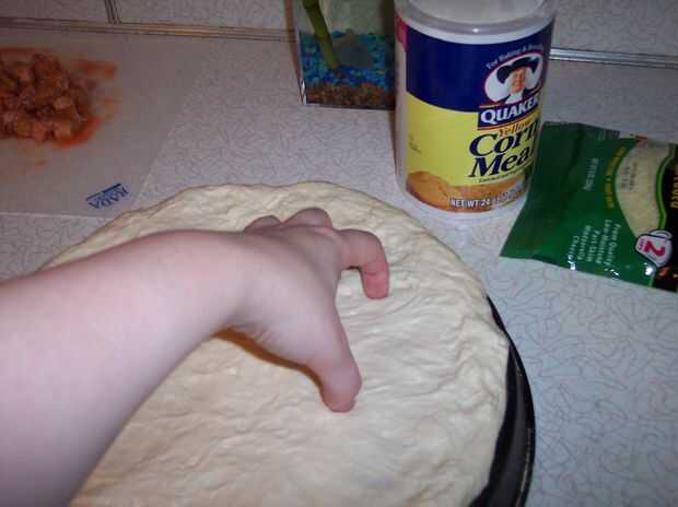 4. extender a los bordes, dejar algunos corteza. Usted puede determinar cuánto desea la corteza. Hago aproximadamente 1" porque me gusta la corteza.