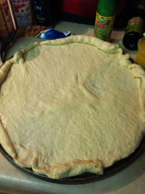 Primero preparar la masa de la pizza! Ya sea, casero, de una caja o pre-hecho, no importa.