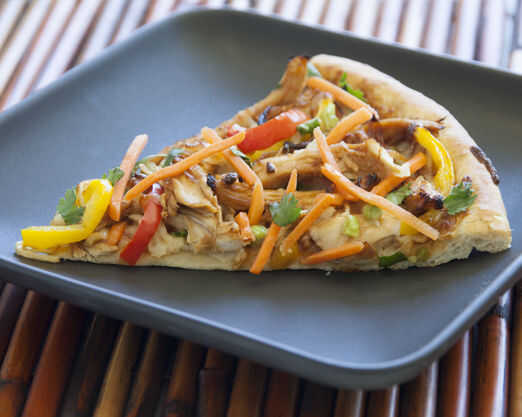 Esta maravillosa pizza se remata con un montón de verduras crujientes y tiene grandes sabores asiáticos.